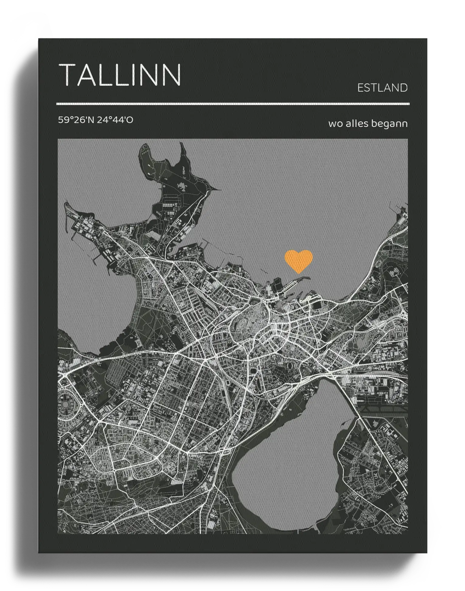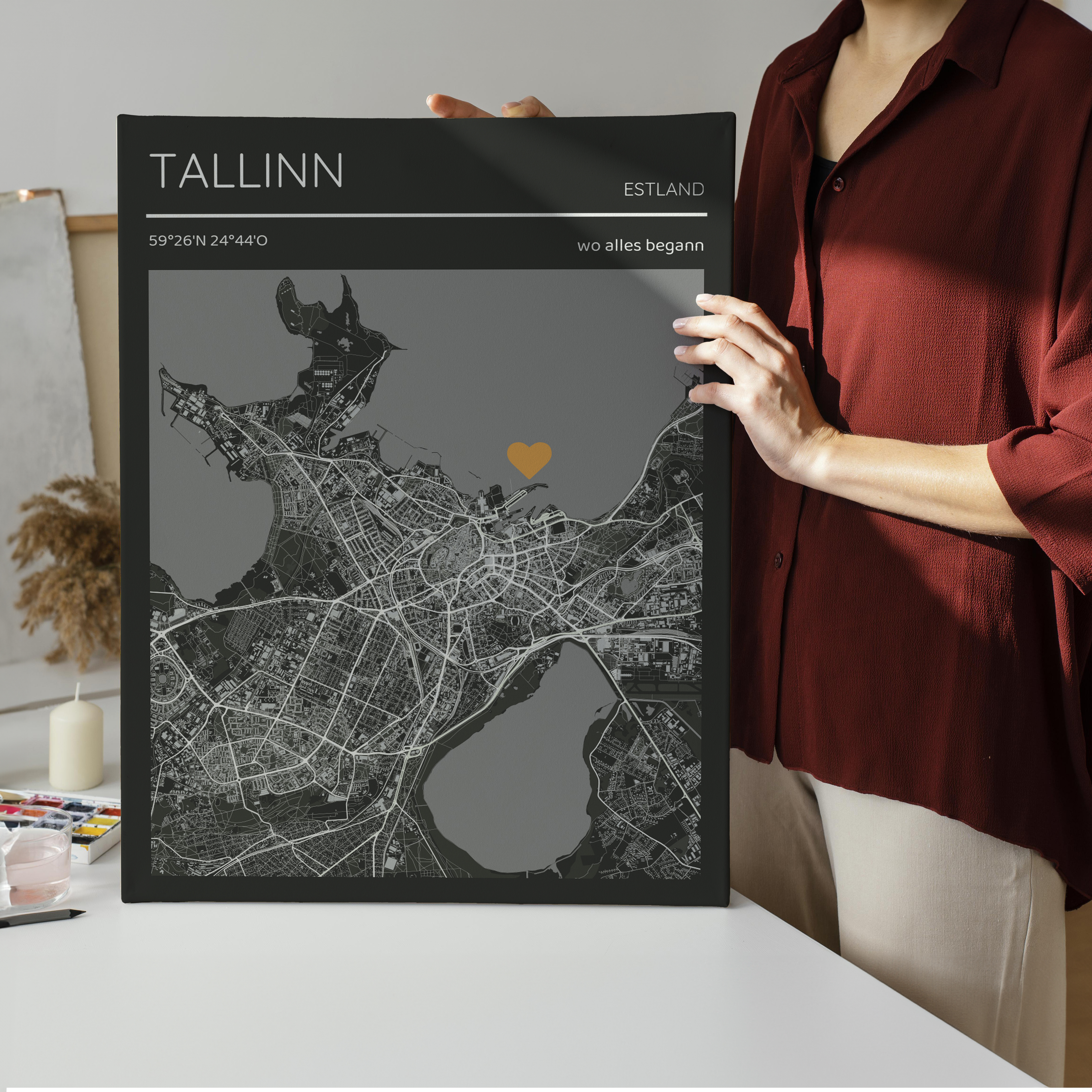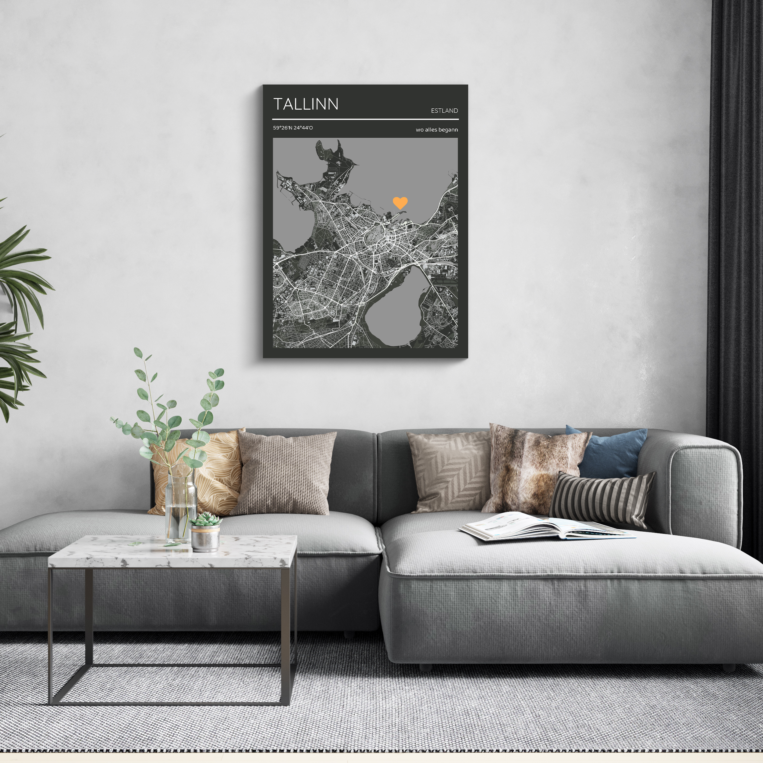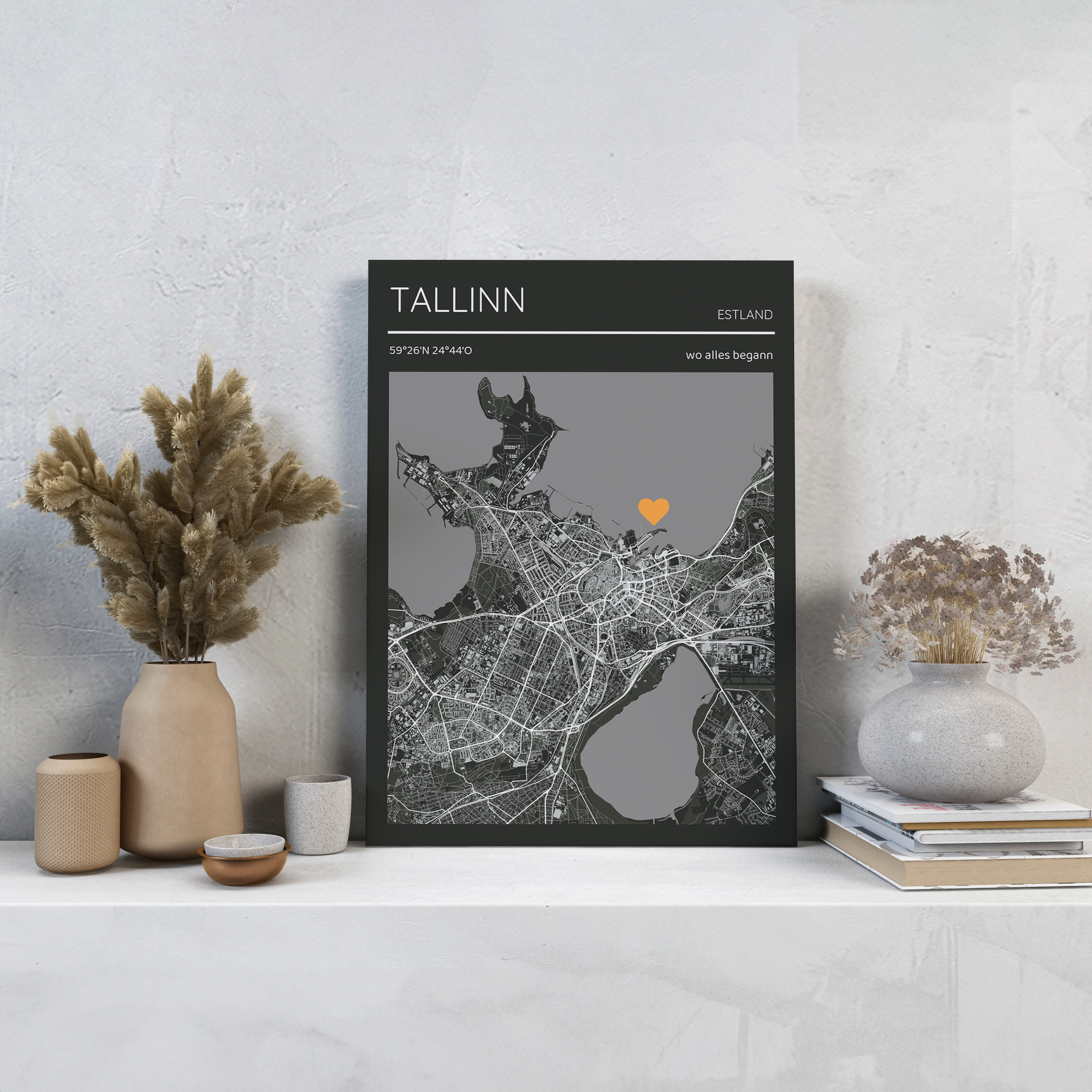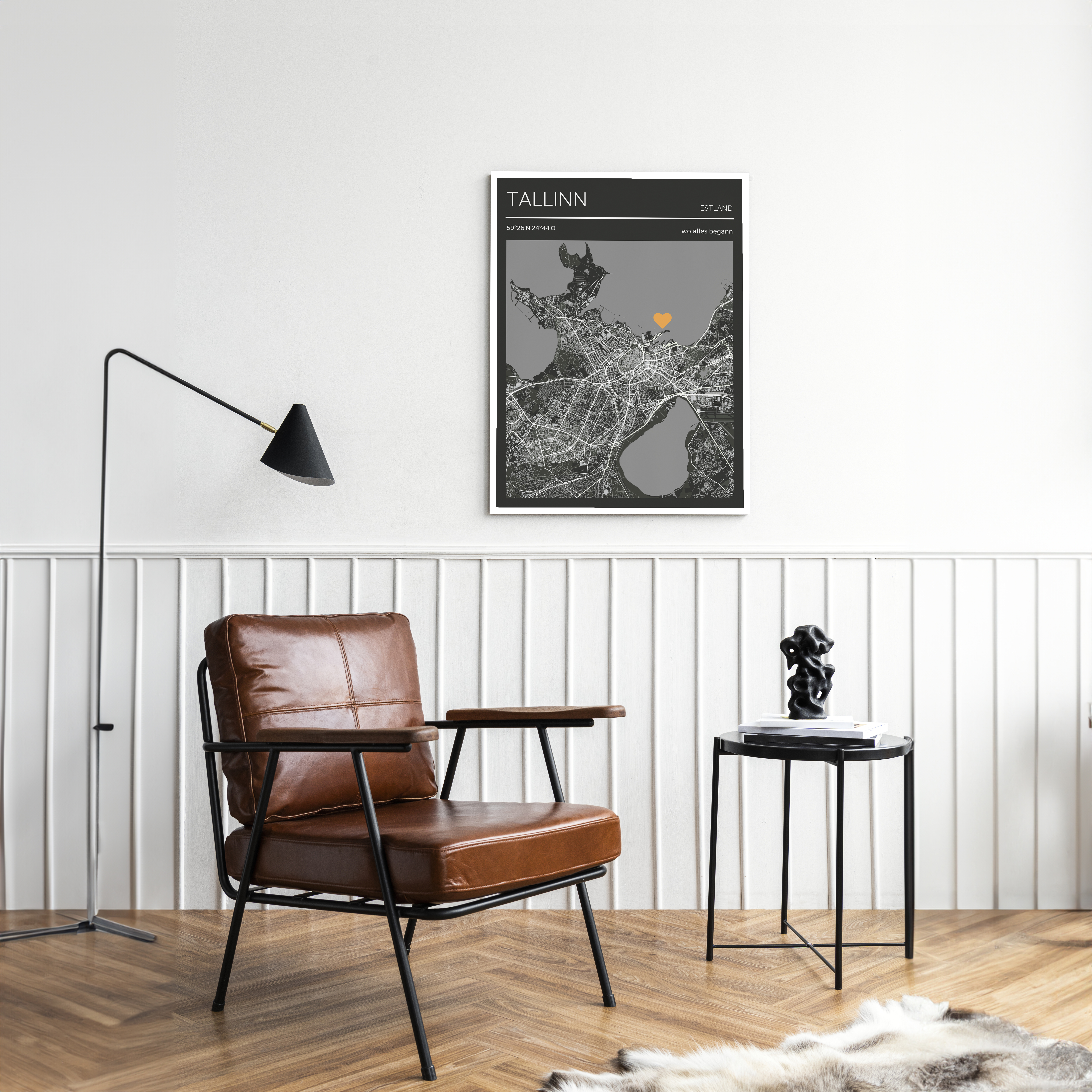 Dunkle Eleganz trifft auf einzigartige Persönlichkeit. Kreiere jetzt Deine individuelle Stadtkarte im dunklen Stil!