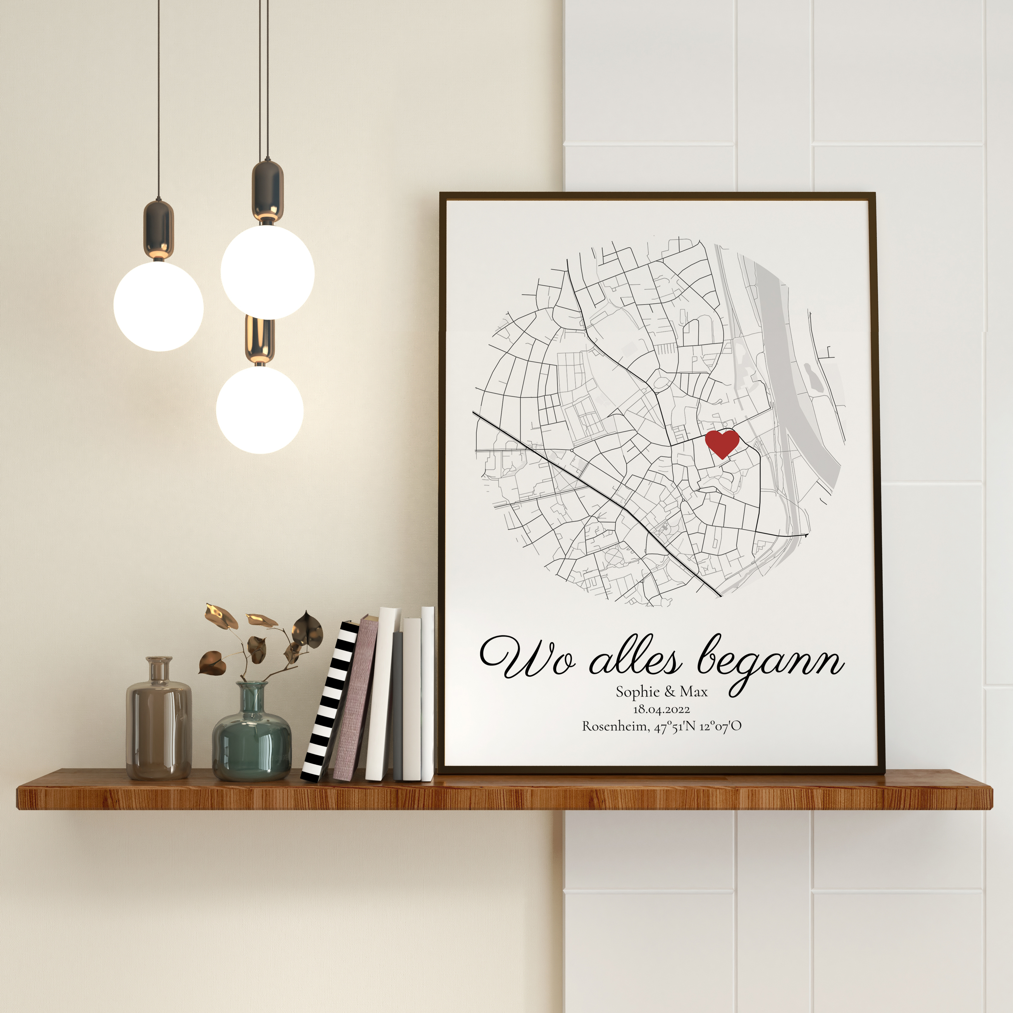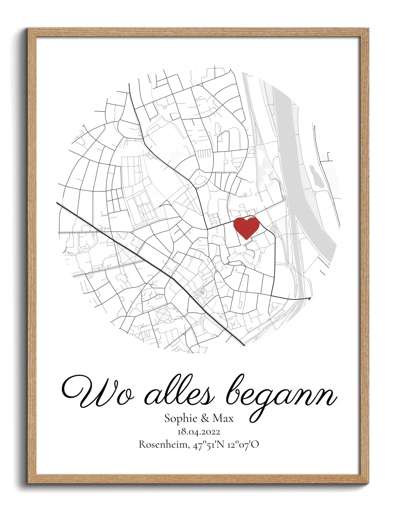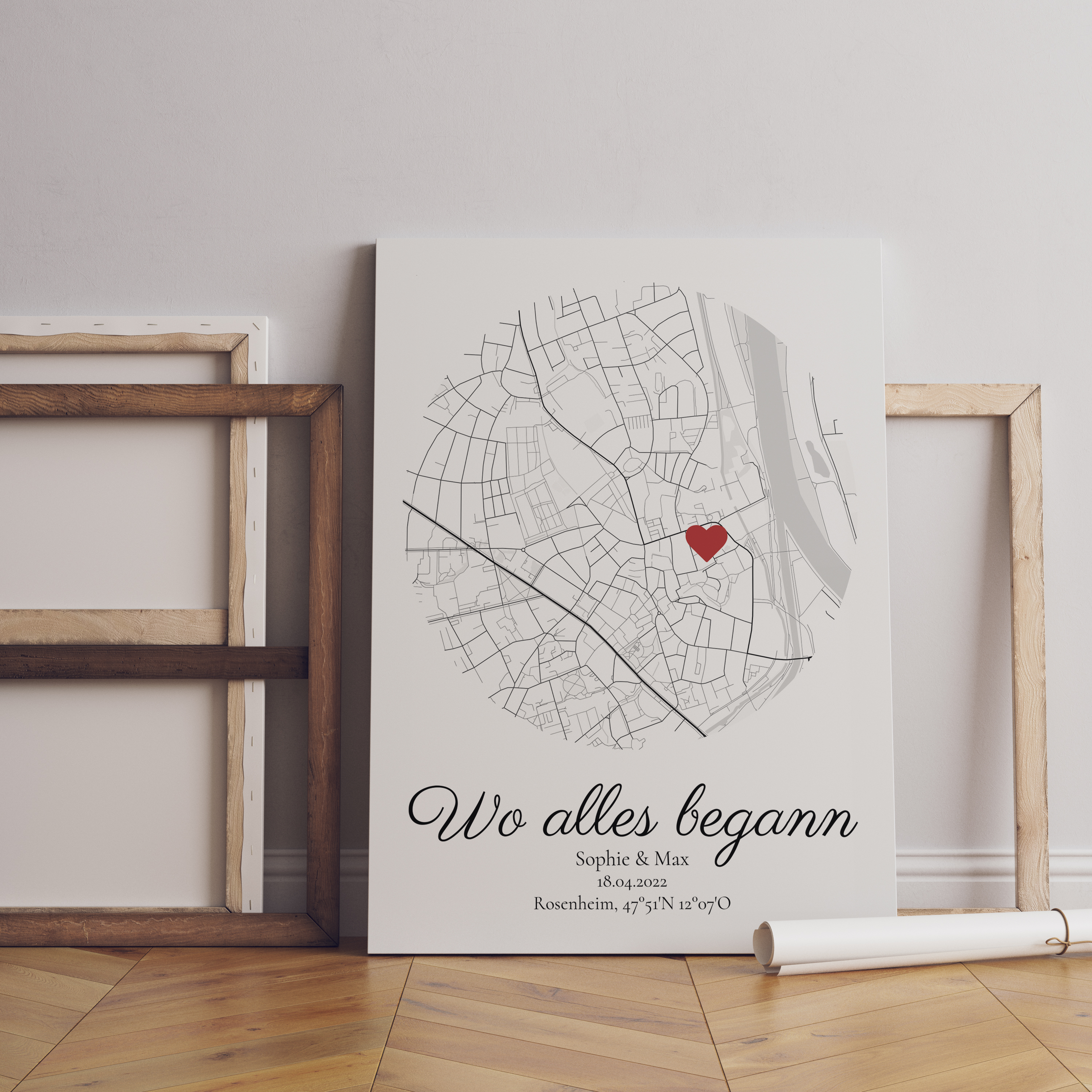 Kreiere Deine personalisierte Stadtkarte in Kreisform und verewige den Ort, wo alles begann. Jetzt loslegen!
