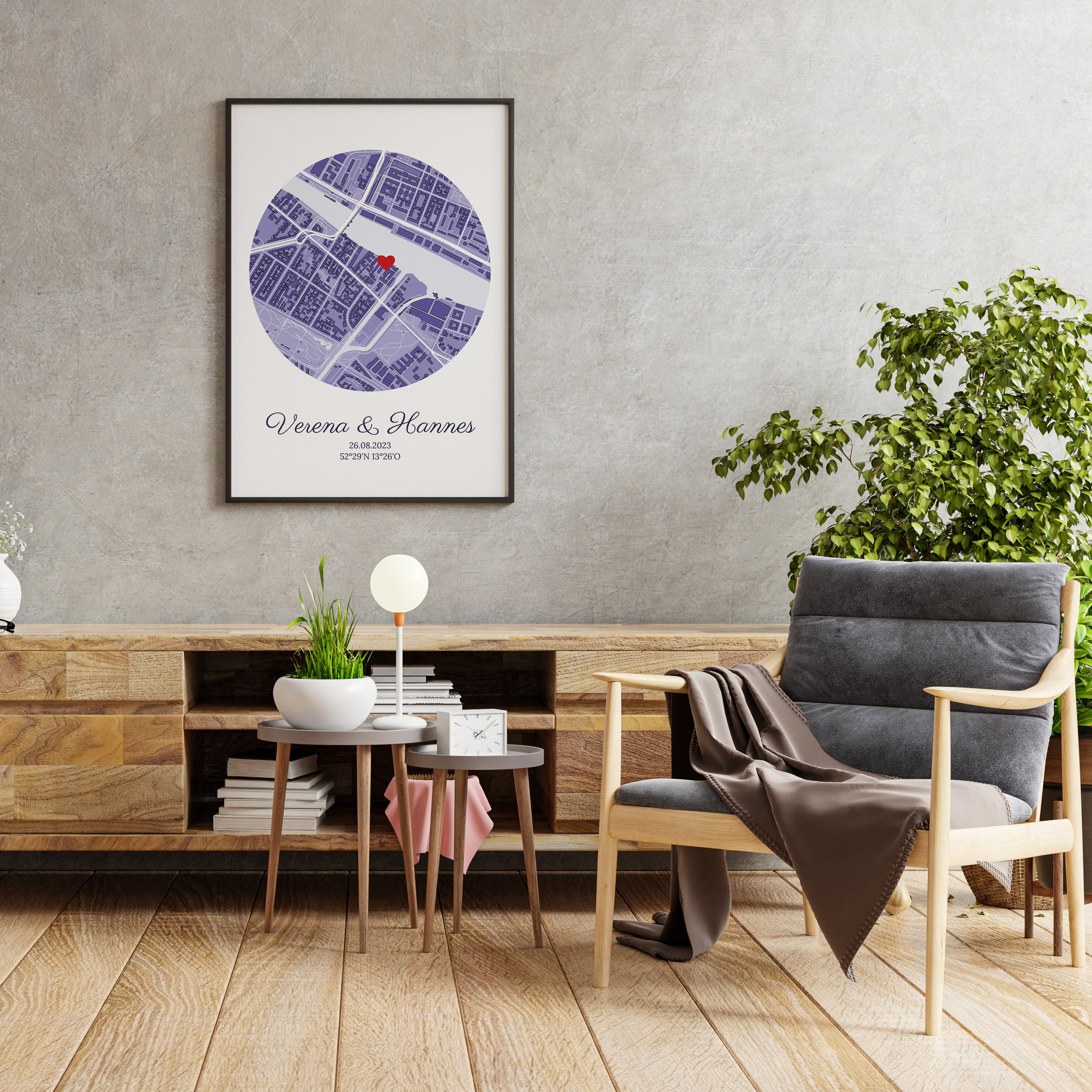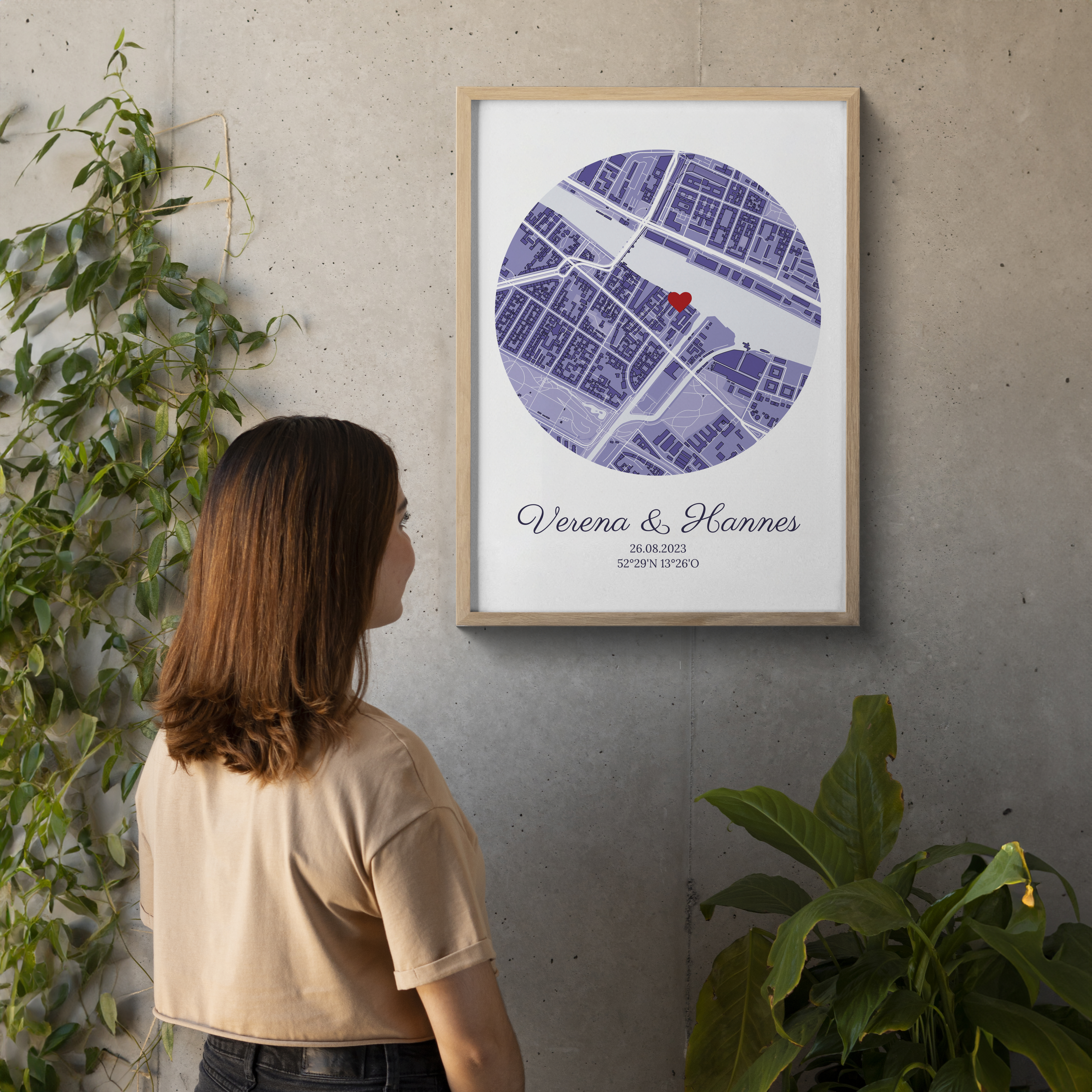 Unsere personalisierten Karten sind in unterschiedlichen Ausführungen verfügbar - ob als Poster, gerahmtes Bild, Leinwand, Acryl, Alu-Dibond oder als digitaler Download. Wir achten auf höchste Qualität bei der Produktion, verwenden UV-beständige Tinten und liefern das Produkt sicher verpackt direkt zu dir nach Hause.